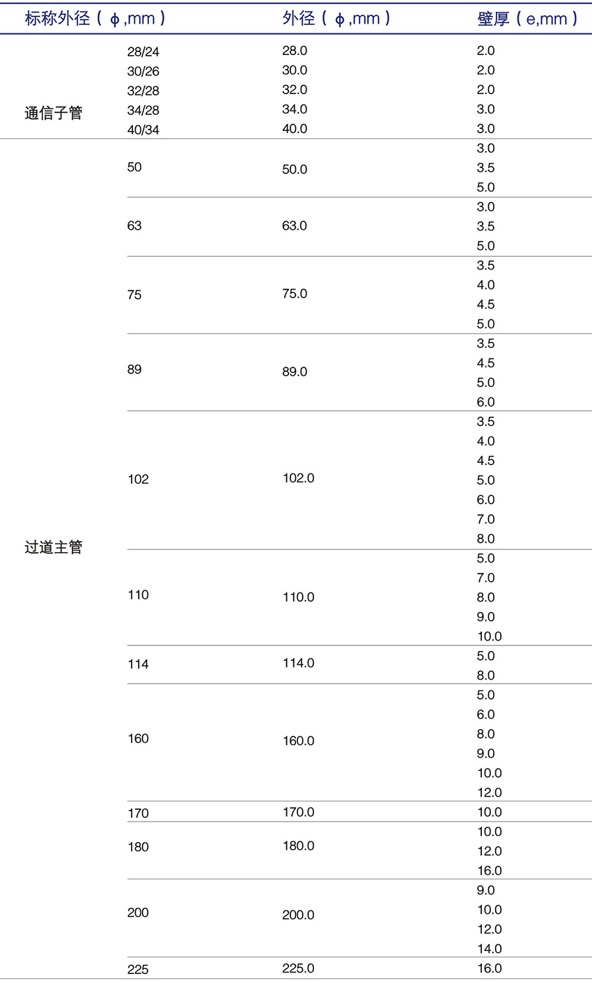 PE通信管產(chǎn)品規(guī)格